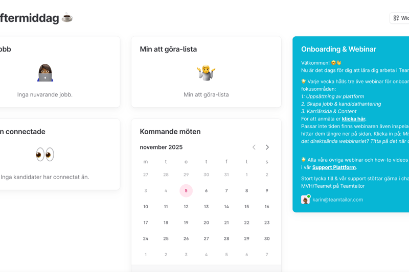 Vid frågor gällande Teamtailor & produkten, vänligen kontakta Karin Wessén hos Teamtailor.